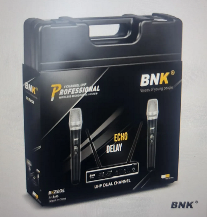 Le système microphone sans fil UHF BNK BK220E est une solution professionnelle conçue pour offrir une qualité audio claire et une transmission stable. Il est livré avec 2 microphones sans fil à main (handheld) et un récepteur double canal, permettant une utilisation simultanée idéale pour les duos, conférences et événements.