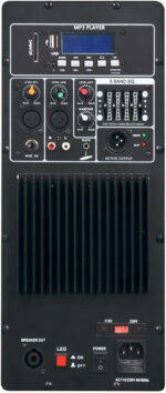 Module amplificateur audio professionnel de classe AB délivrant 150W RMS. Conçu pour l’intégration dans des enceintes actives, il combine une amplification de qualité avec une section source complète : USB, SD, MP3, FM, Bluetooth, TWS, et entrées micro/ligne. Idéal pour les systèmes de sonorisation polyvalents dans les commerces, écoles ou petites salles.